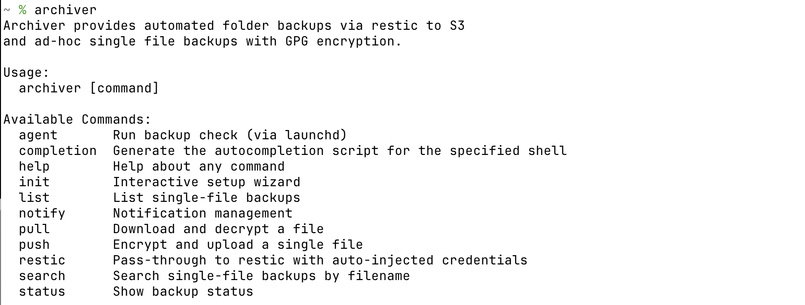 backups to S3, scheduled automatically via launchd. Also